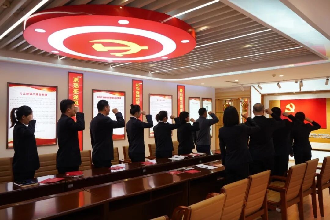 在第一党支部书记王娜同志的带领下,党员干警们高举右拳,面对党旗,庄严宣誓,用铿锵誓言表达听党话、跟党走的坚定决心。
