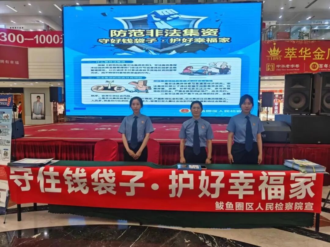 2024年6月是全国第12个“防范非法集资宣传月”。为进一步加大防范非法集资宣传力度,增强群众风险防范意识,鲅鱼圈区人民检察院以防范非法集资宣传月为契机,以“守住钱袋子·护好幸福家”为主题,联合区公安局经侦大队先后深入社区、商场开展防范非法集资系列宣传活动,提升社会公众防范非法集资的意识和能力,营造全民防非、主动拒非的良好社会氛围。