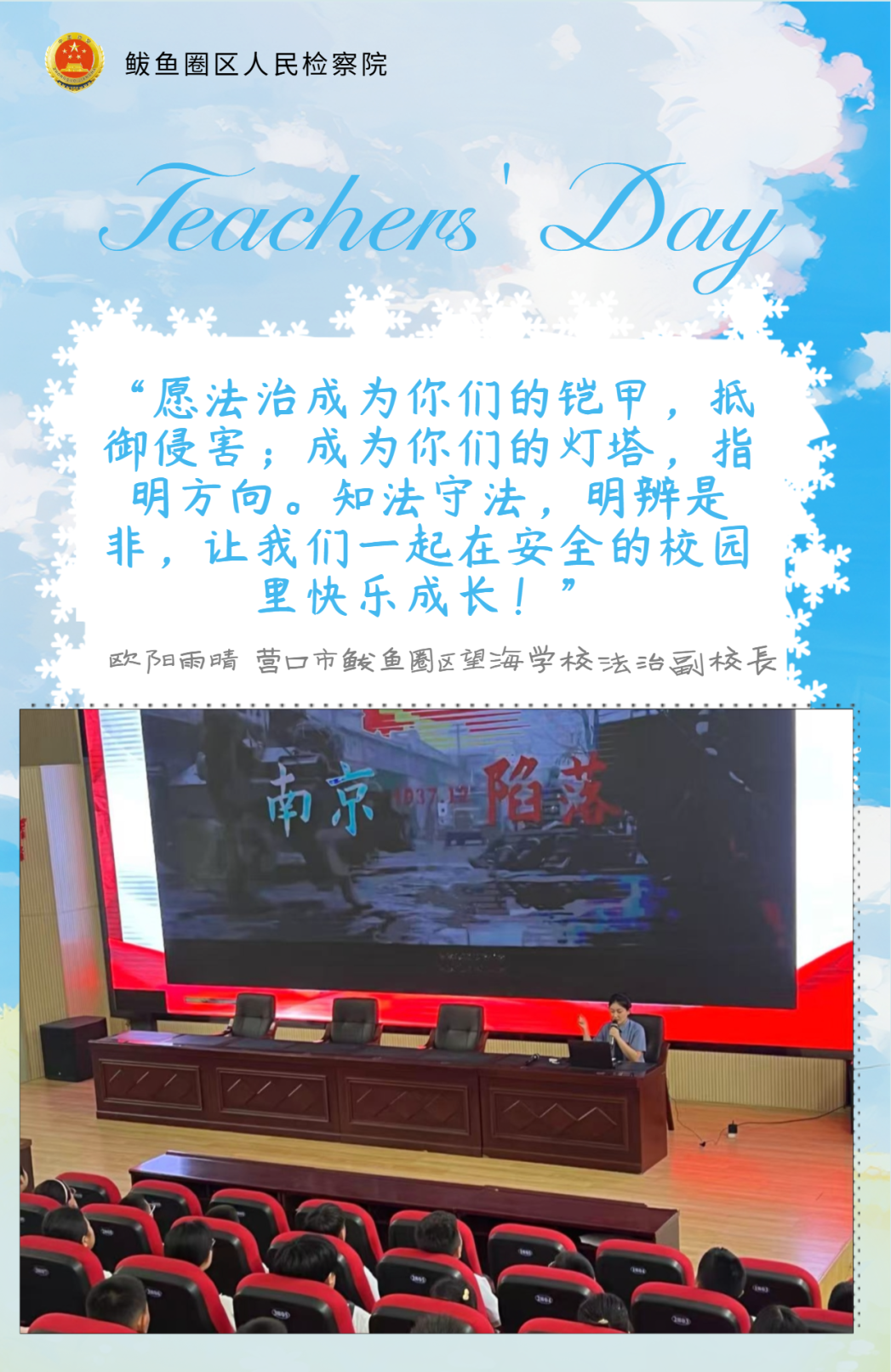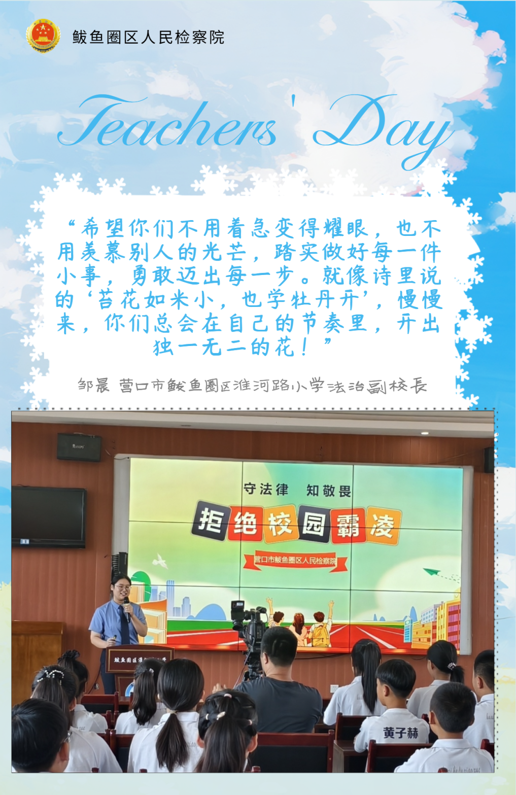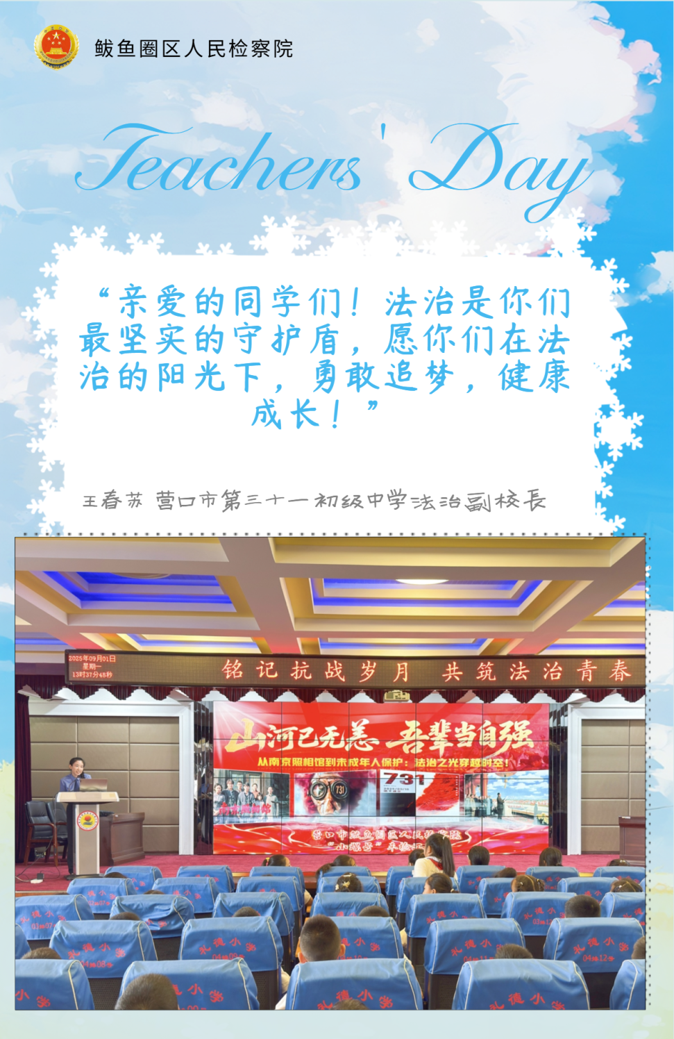 新学期伊始,鲅鱼圈区人民检察院的
